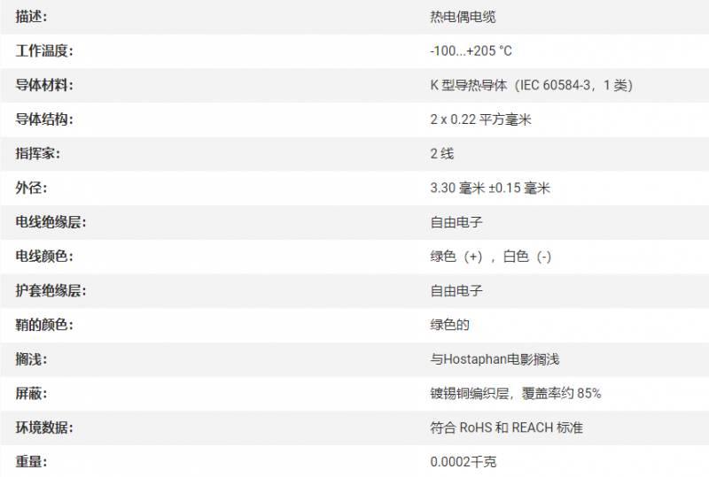 B+B K型热电偶电缆,2 x 0.22 mm²系列