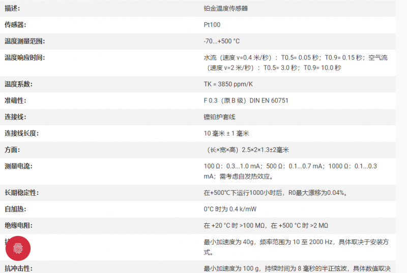 B+B 铂金温度传感器Pt100 | F 0.3系列