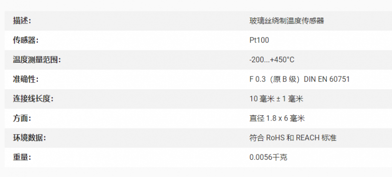B+B 玻璃丝绕制温度传感器 Pt100系列