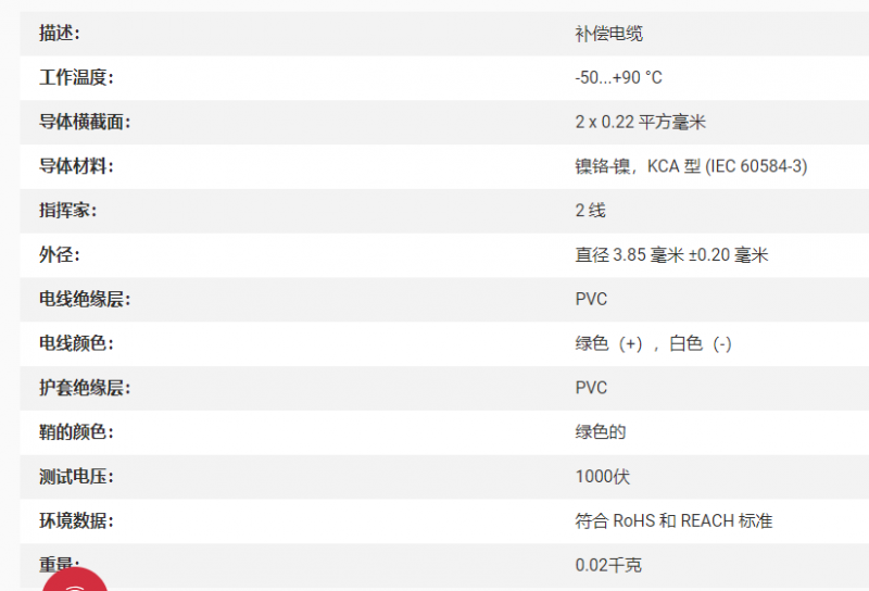 B+B K型补偿电缆,2 x 0.22 mm²系列