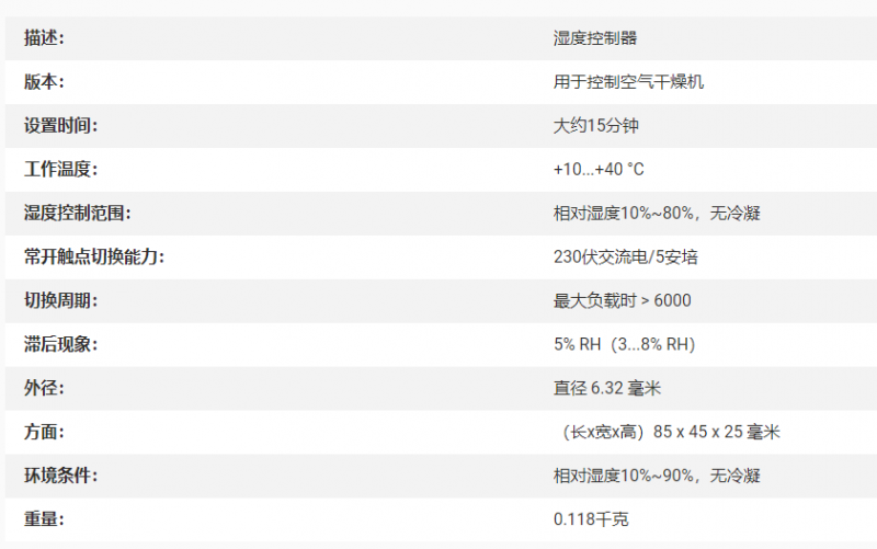 B+B 用于控制空气干燥机的湿度控制器系列